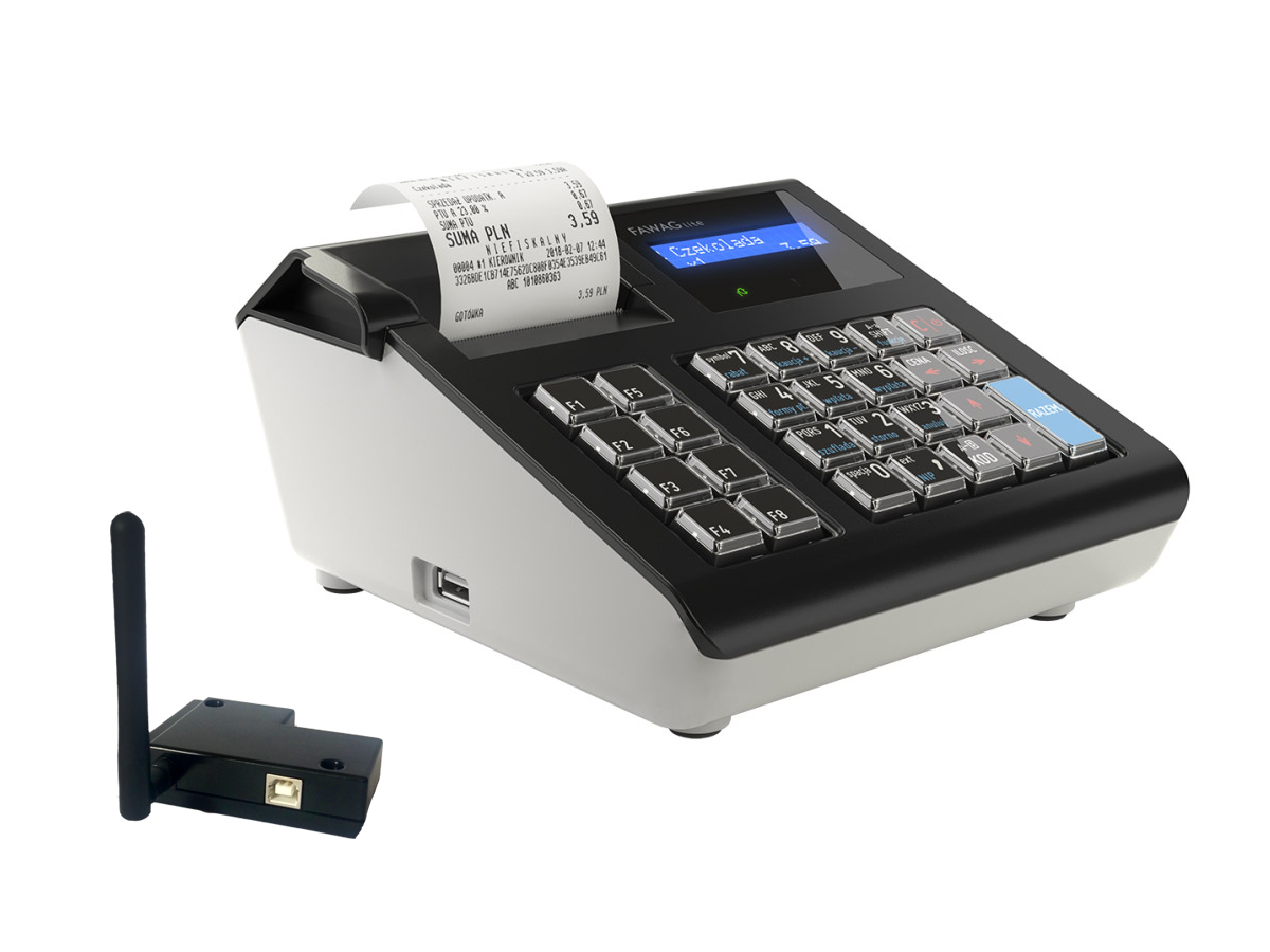 Kasa łączy się jednym kablem USB z terminala Paytel i współpracuje bez specjalnej dodatkowej konfiguracji.